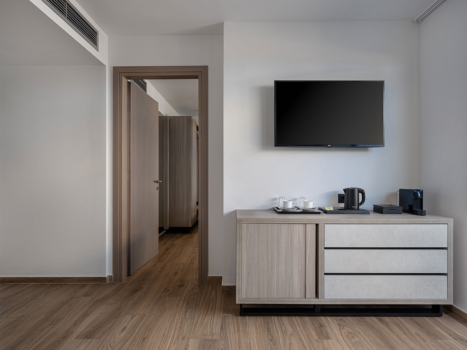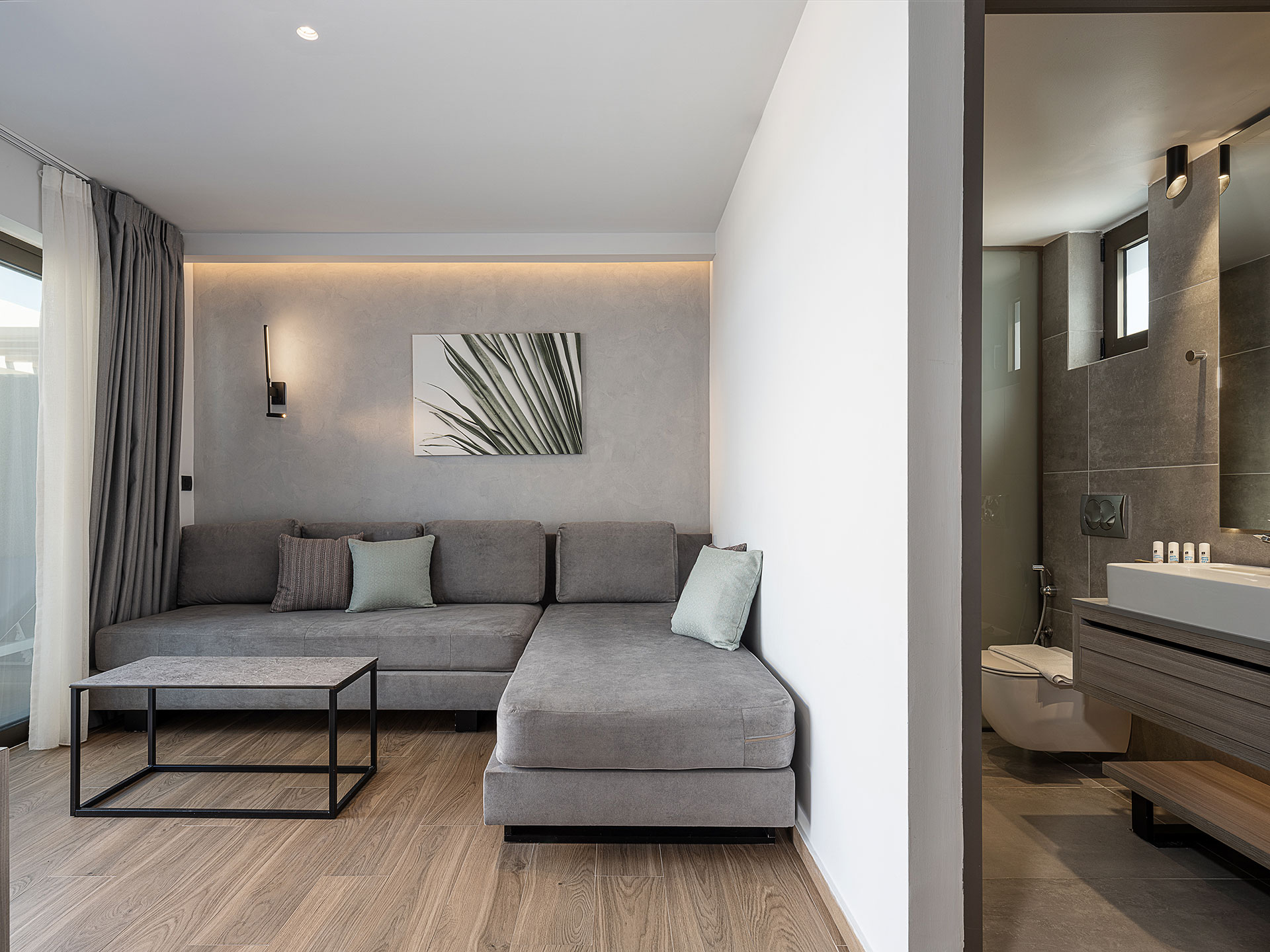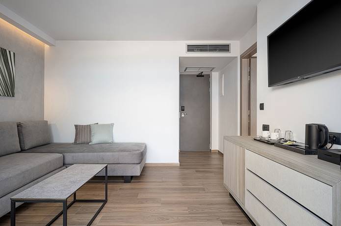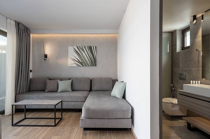 Αυτή η Σουίτα αποτελεί τη μεγαλύτερη επιλογή διαμονής, ιδανική για ένα ζευγάρι ή για παρέα 4 ατόμων. Η κρεβατοκάμαρα περιλαμβάνει ένα υπέρδιπλο κρεβάτι – τέλειο για έναν άνετο και ξεκούραστο ύπνο! Στη διακόσμηση συνδυάζονται μίνιμαλ και μοντέρνα στοιχεία, που δημιουργούν μια ατμόσφαιρα κομψότητας και ηρεμίας. Απολαύστε την ασύγκριτη θέα με πλήρη ιδιωτικότητα από την πισίνα της σουίτας σας.