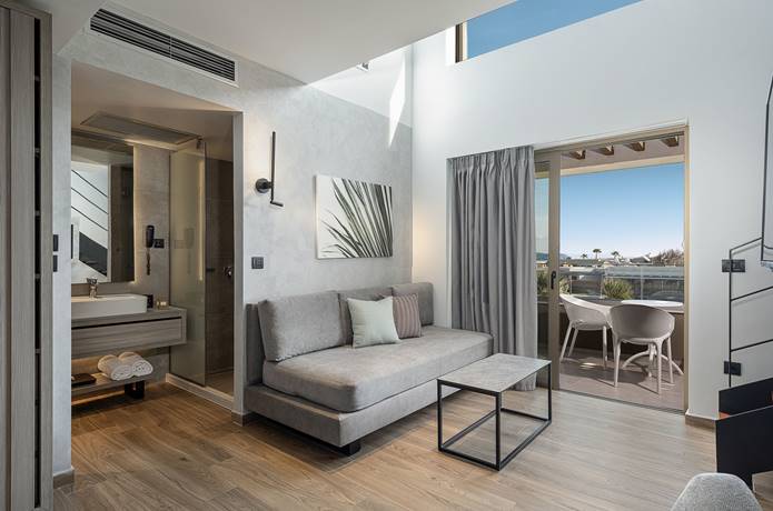 Η Junior σουίτα διατίθεται σε δύο ξεχωριστές επιλογές, ως μεζονέτα ή ως διαμέρισμα ενός ορόφου. Με υπέροχη θέα στη θάλασσα, φυσικά στοιχεία στο design, όπως ξύλο και μάρμαρο, αλλά και άπλετο φυσικό φως, η Junior σουίτα δημιουργεί αμέσως την ιδανική ατμόσφαιρα χαλάρωσης, ηρεμίας και οικειότητας για μια premium εμπειρία διακοπών.
