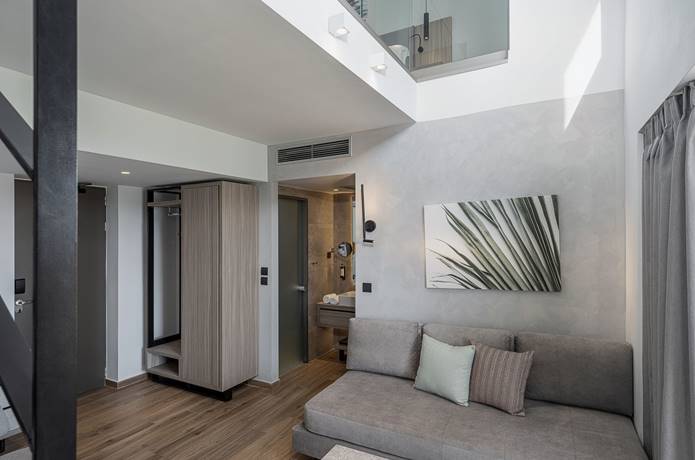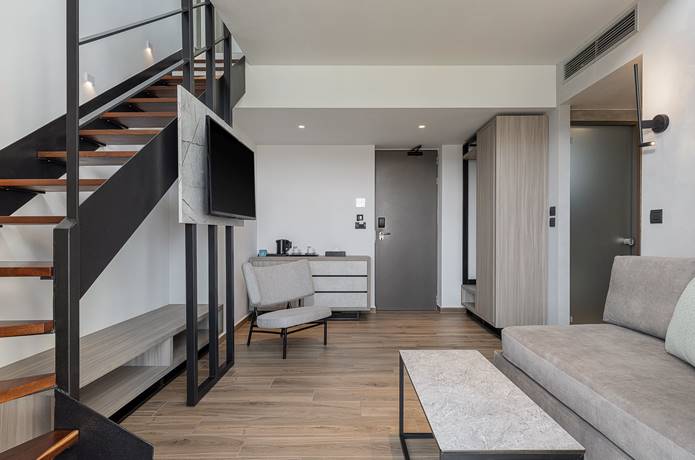Η Junior σουίτα διατίθεται σε δύο ξεχωριστές επιλογές, ως μεζονέτα ή ως διαμέρισμα ενός ορόφου. Με υπέροχη θέα στη θάλασσα, φυσικά στοιχεία στο design, όπως ξύλο και μάρμαρο, αλλά και άπλετο φυσικό φως, η Junior σουίτα δημιουργεί αμέσως την ιδανική ατμόσφαιρα χαλάρωσης, ηρεμίας και οικειότητας για μια premium εμπειρία διακοπών.